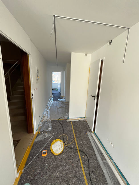 Die Decke im Flur wurde abgehangen, sowie die im Bad und WC.