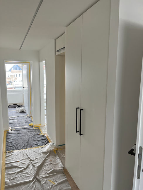 Die Lofttüre wurde vom befreundeten Schreiner angefertig und eingebaut, sowie der neue Einbauschrank im Flur.